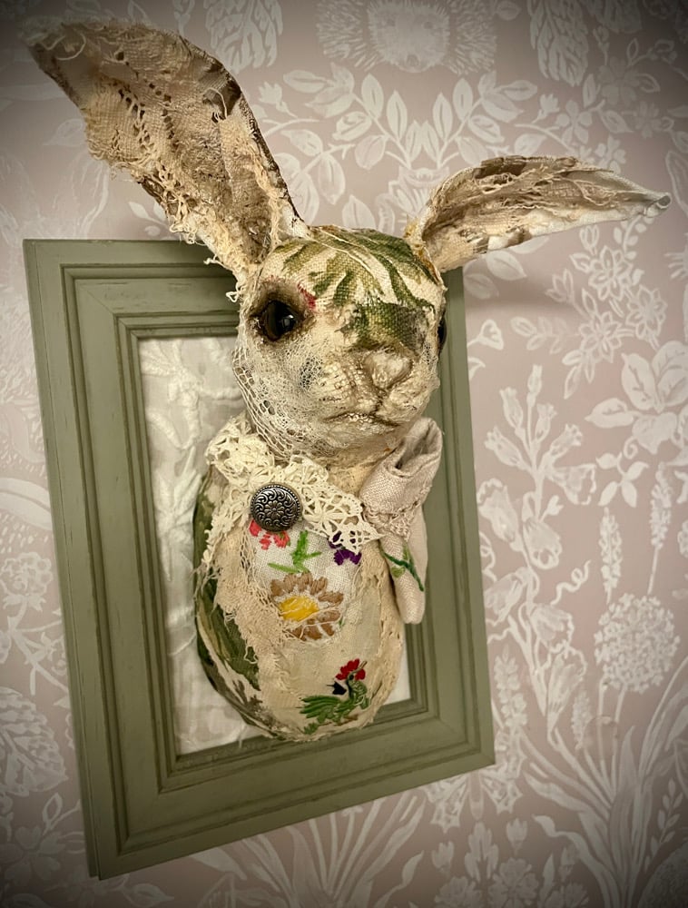 Together we will be decorating a pre-made mould (made by myself) of a beautiful little rabbit using recycled and vintage textiles, lace and embellishments.